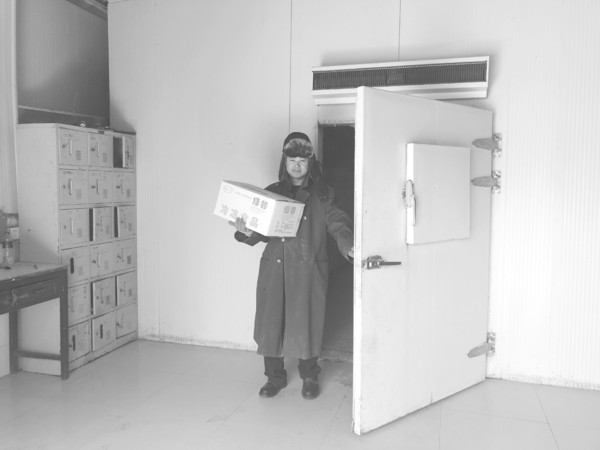 按照工作制度,搬運工人連續(xù)在冷庫中作業(yè)不超過1個小時。冷庫的角落里裝有監(jiān)控設施,一旦監(jiān)控室發(fā)現(xiàn)冷庫出現(xiàn)異常,或者搬運工反應遲鈍,就會去打開庫房,讓其停止作業(yè)并及時撤出冷庫。